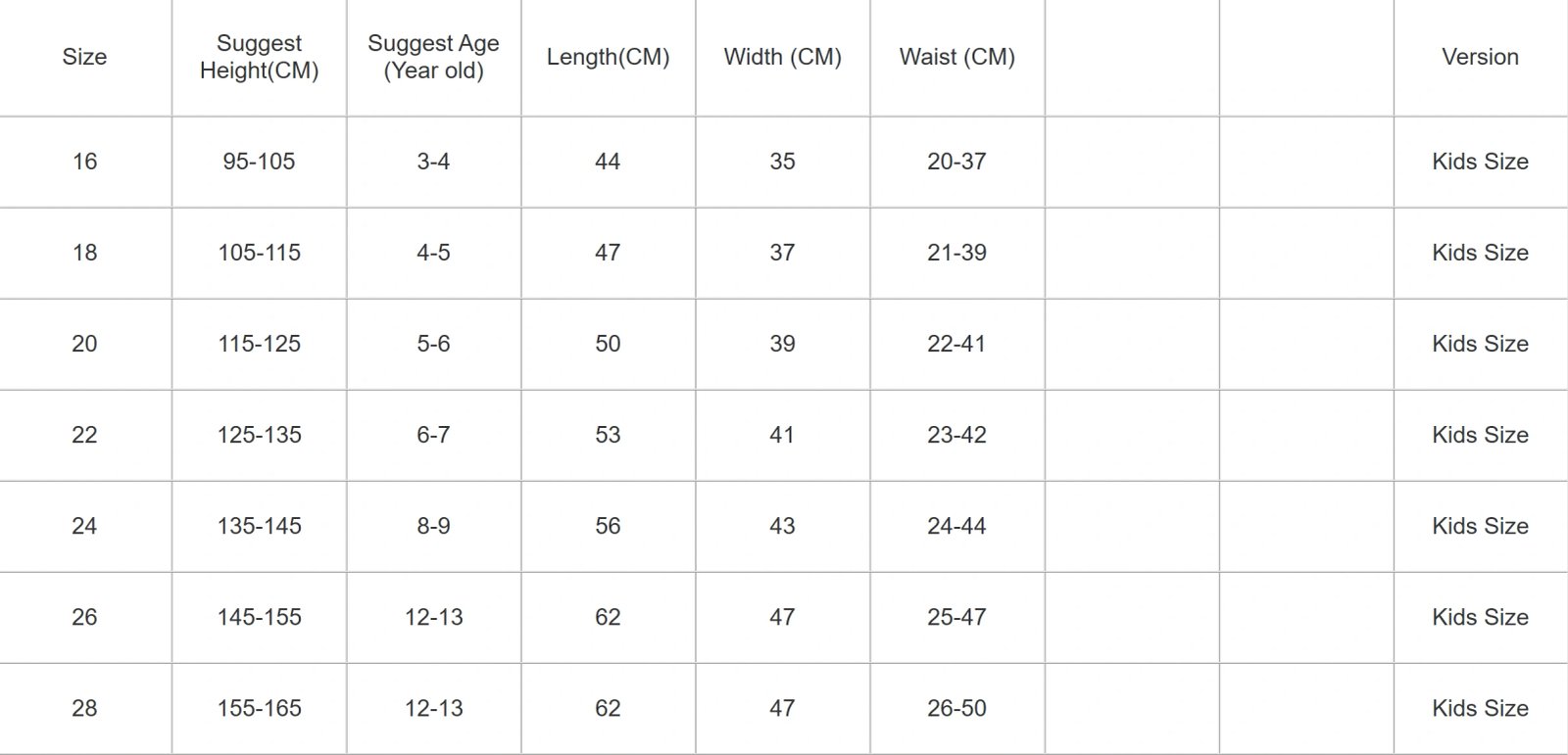 16 ,18 ,20 ,22 ,24 ,26 ,28 |